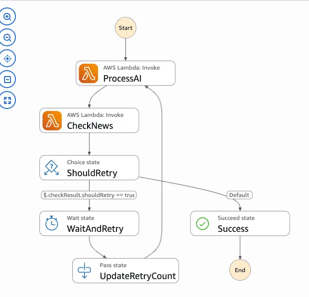 사이드 프로젝트인 것 만큼, 저의 운영 리소스가 많이 들지 않았으면 했고, 이를 위해서 번역 데이터를 확실하기 처리하기 위해 Step Function을 도입했습니다.